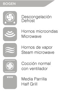 Horno. Modelo Bogen, con funciones más complejas como microondas, convección y vapor en uno, es ideal para una cocina saludable libre de elementos grasos. Además sus opciones de menús programados le permitirán combinar las distintas funciones entre sí.