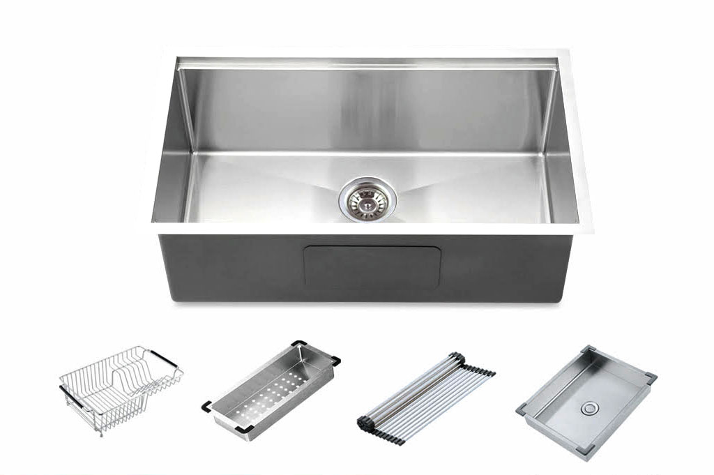 Este fregadero está magníficamente hecho a mano desde un único panel de acero inoxidable 304 de calibre 18 de primera calidad, para crear así la geometría perfecta, esquinas con cero radio y funcionales ranuras de drenaje en “X” moldeados en su base. Su tina profunda le facilitará el lavado de grandes piezas.