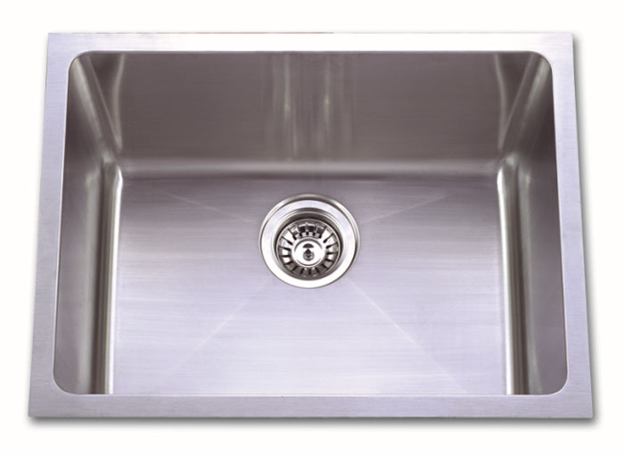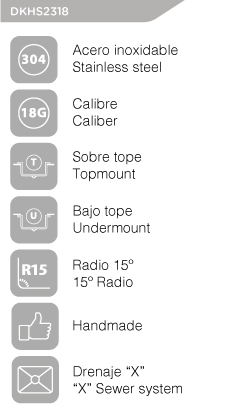 Fregadero Handmade DKHS2318. Gama exclusiva de fregaderos handmade Der Koch. Llenos de elegancia, diseño y funcionalidad, cada fregadero está magníficamente hecho a mano desde un único panel de acero inoxidable 304 de calibre 18 de primera calidad, para crear así la geometría perfecta, esquinas R15 con una leve curvatura y funcionales ranuras de drenaje en “X” moldeados en su base. Su tina profunda le facilitará el lavado de grandes piezas.