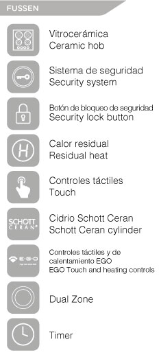 Plantillas vitrocerámicas. Con una velocidad de calentamiento incomparable a cualquier otro sistema, su tiempo de respuesta es prácticamente inmediato. El sistema táctil facilita la limpieza y durabilidad, ya que no caen residuos líquidos de alimento dentro de la misma plantilla. La seguridad propia de la utilización de la energía eléctrica se añade a que el calor se concentra en las zonas de cocción sin peligros de quemaduras si se toca el resto de la superficie. De igual forma, este producto posee un bloqueo para la seguridad de los niños.